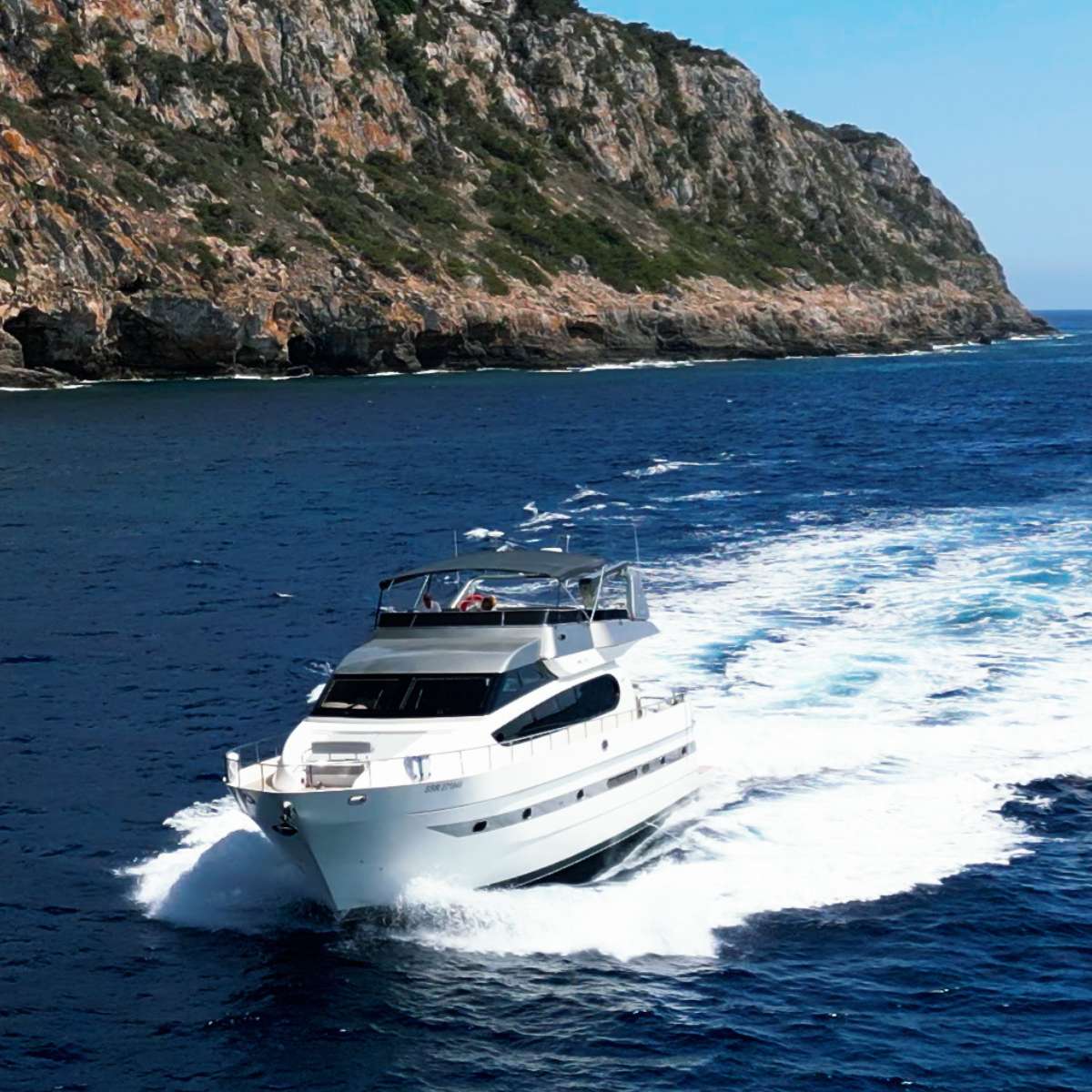 Die Monte Fino 70 ist eine komplett überholte klassische Schönheit, die wir Ihnen gerne empfehlen möchten, weil sie mit so viel Geschmack überarbeitet wurde. Das PEARL1 Luxury Yacht Design hat durch eine Sonderanfertigung ein völlig neues, offenes Designkonzept im Loft-Stil entwickelt. Dieses Design kombiniert die Kombüse mit einem sonnigen, informellen Essbereich, 2 Doppelkabinen und 1 Zweibettkabine, um sicherzustellen, dass Ihre Freunde und/oder Familie eine tolle Zeit an Bord genießen können. Sie bietet auch fantastische Außenbereiche, in denen man gut essen oder sich bei einem Sonnenbad mit Blick auf das magische Mittelmeer entspannen kann.