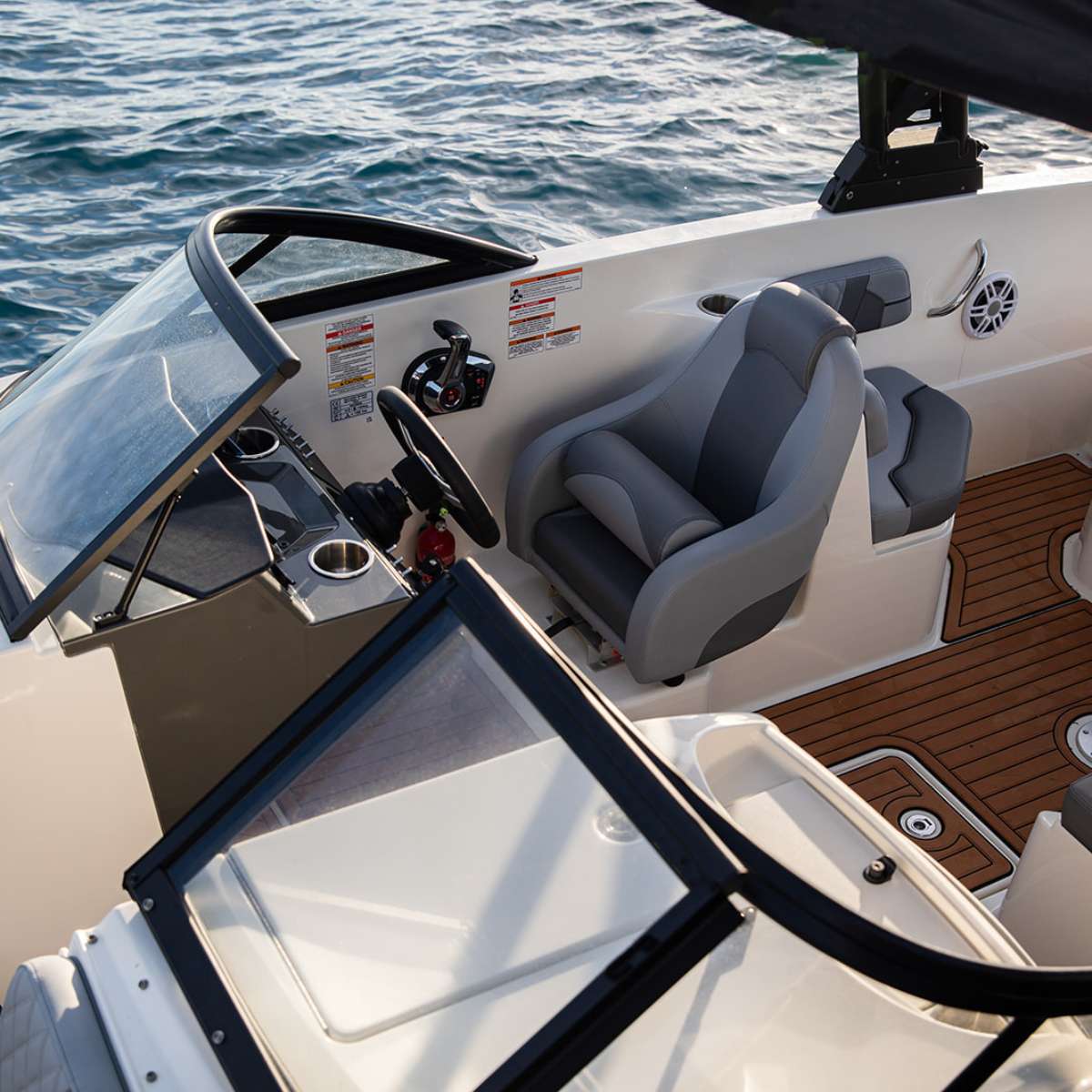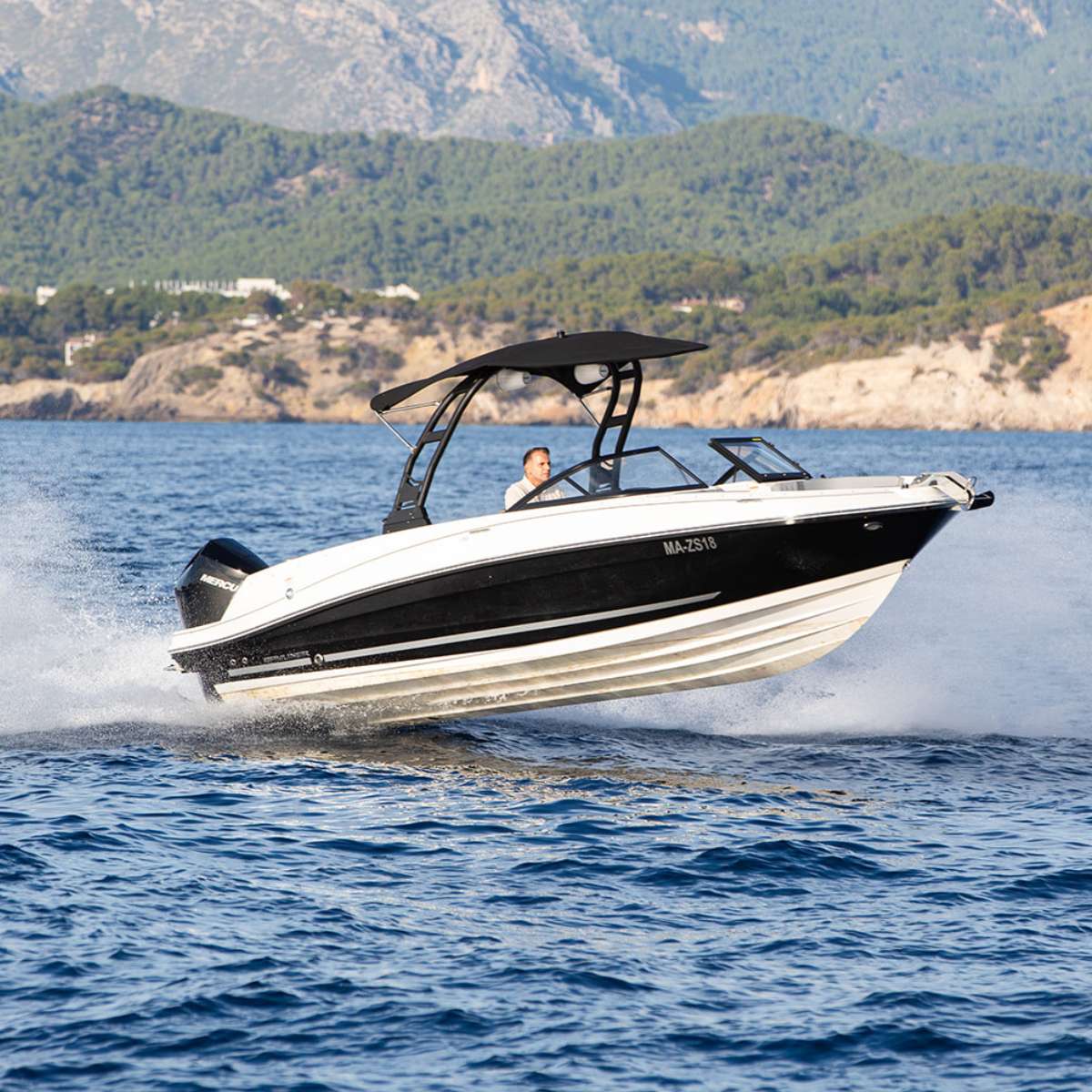 Die Bayliner VR6 überzeugt durch seine Schnelligkeit und seine Wendigkeit. Der Mercury Aussenboarder-Motor mit 225 PS gibt ausreichend Power um Wasserski oder Wakeboard zu fahren. Aber die Bayliner ist nicht nur für Wassersport geeignet, mit seinen edlen und komfortablen grauen Ledersitzen im vorderen wie im hinteren Bereich lädt das Boot auch zur kleinen Spritztour unter Freunden ein. Bis zu 10 Personen finden ausreichend Platz an Bord. Mit seiner integrierten Kühlbox, einem WC und einer hochwertigen Soundanlage hat die Bayliner alles was man für den perfekten Tagesausflug auf dem Meer braucht.