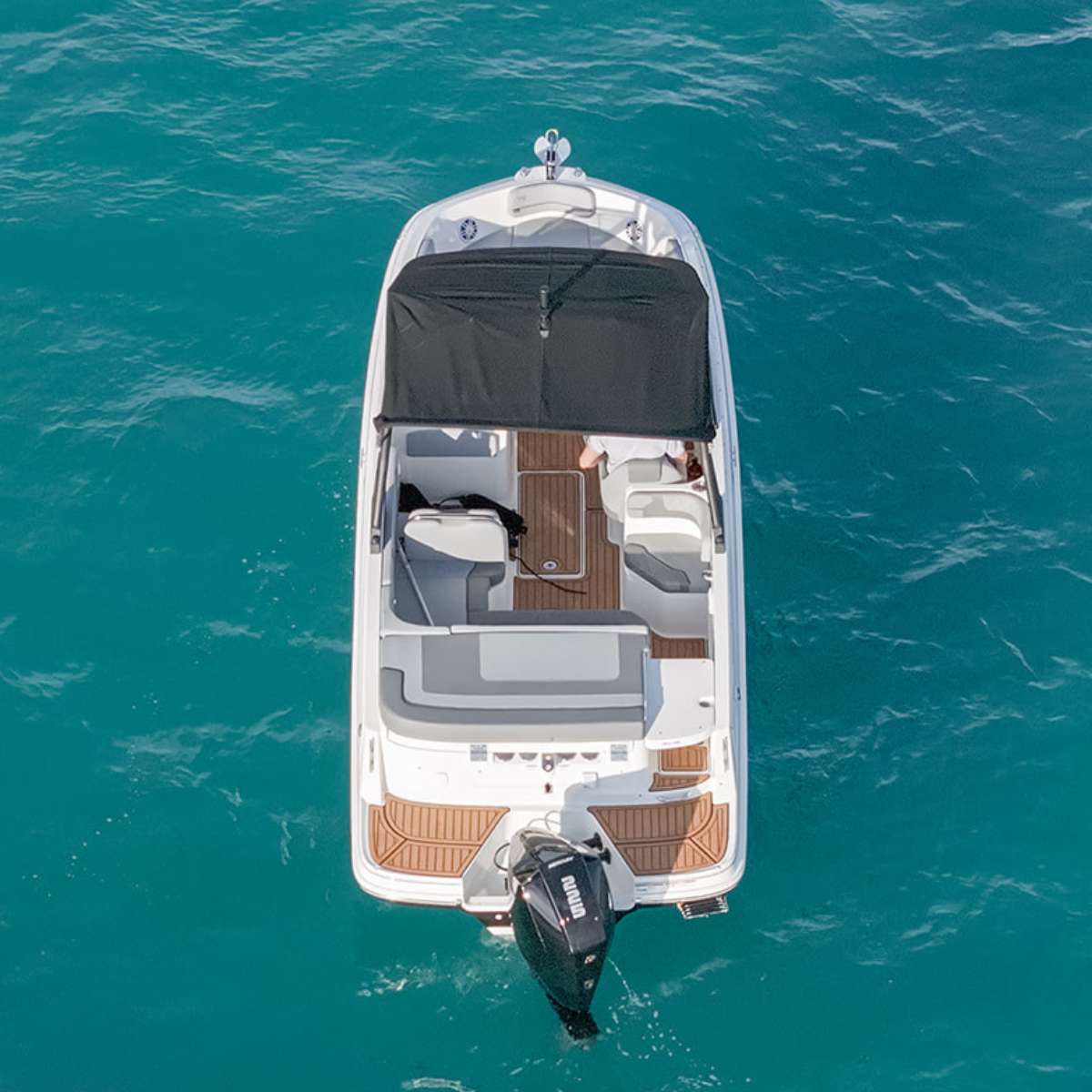 An Deck: Badeplattform, Badeleiter, Bimini-Abdeckung