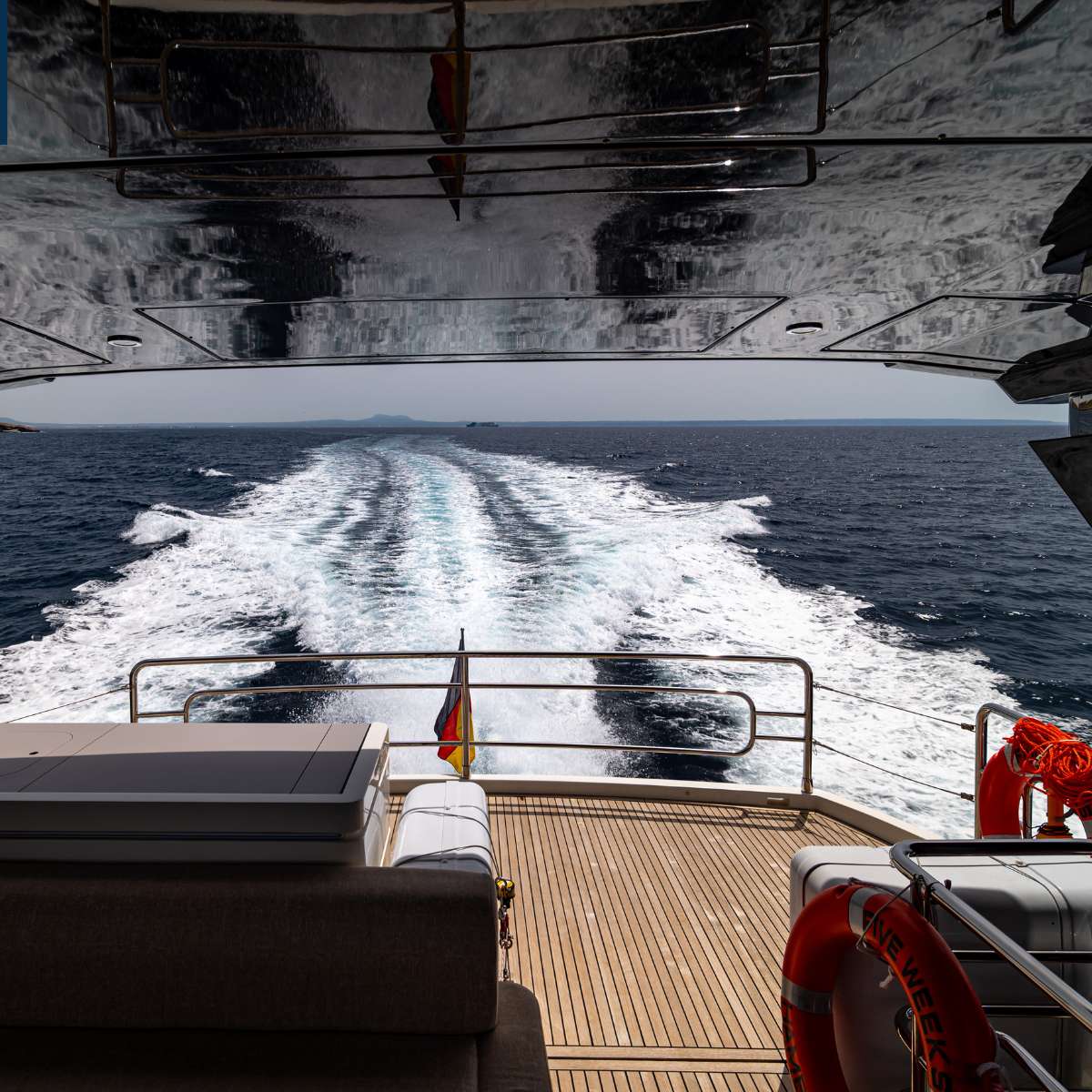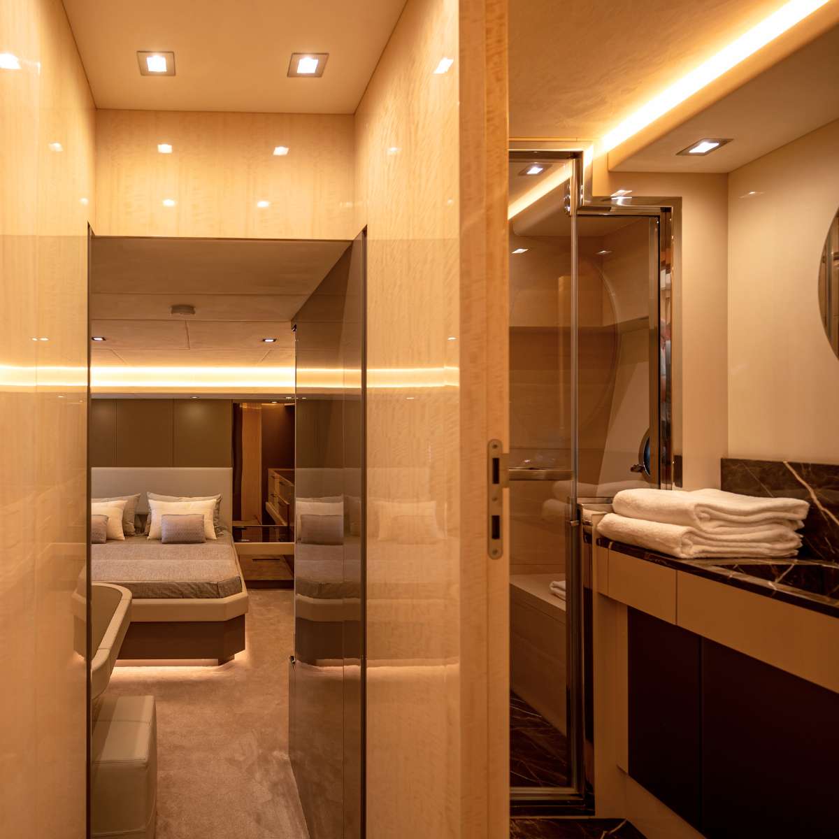 Die MCY66 wurde 2021 mit dem Ship Design Award ausgezeichnet und ist das Kronjuwel unserer Flotte. Ausgestattet mit einem Stabilisierungssystem, ist sie eine ideale Option für Gäste, die zu Reisekrankheit neigen. Der Salon ist ein offener Raum, der zusammen mit der Kombüse einen großen und gemütlichen Raum bildet. Die geräumige vordere Sonnenliege ist ideal zum Entspannen und für schöne Sonnenbäder und romantische Abende vorgesehen. Die MCY66 bietet ein perfektes räumliches Layout und eine beeindruckend luxuriöse Innenausstattung mit Naturstein, italienischem Leder und vielen anderen hochwertigen Materialien.